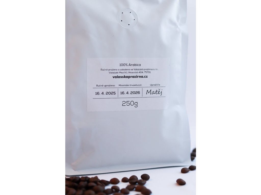 - 250 g čerstvě pražené 100% Arabicy z Valašské pražírny – voňavá káva, která tě postaví na nohy rychleji než playlist oblíbených hitů na Radiu Čas.